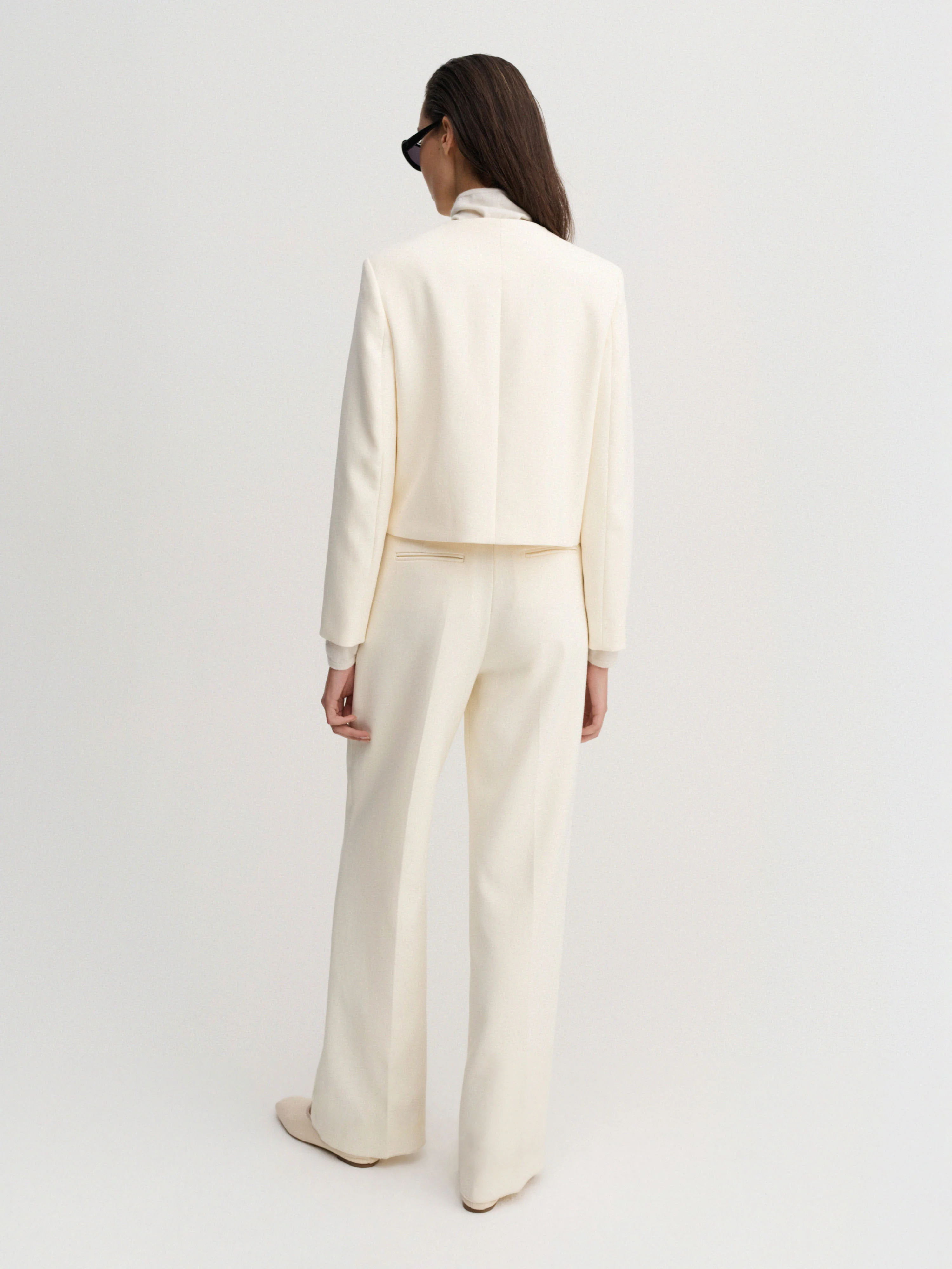 Funda Jacket is crafted from a refined woven blend with a smooth hand feel and elegant structure. Cut to a boxy, cropped silhouette with a clean, collarless neckline and structured shoulders. Finished with a row of buttons.