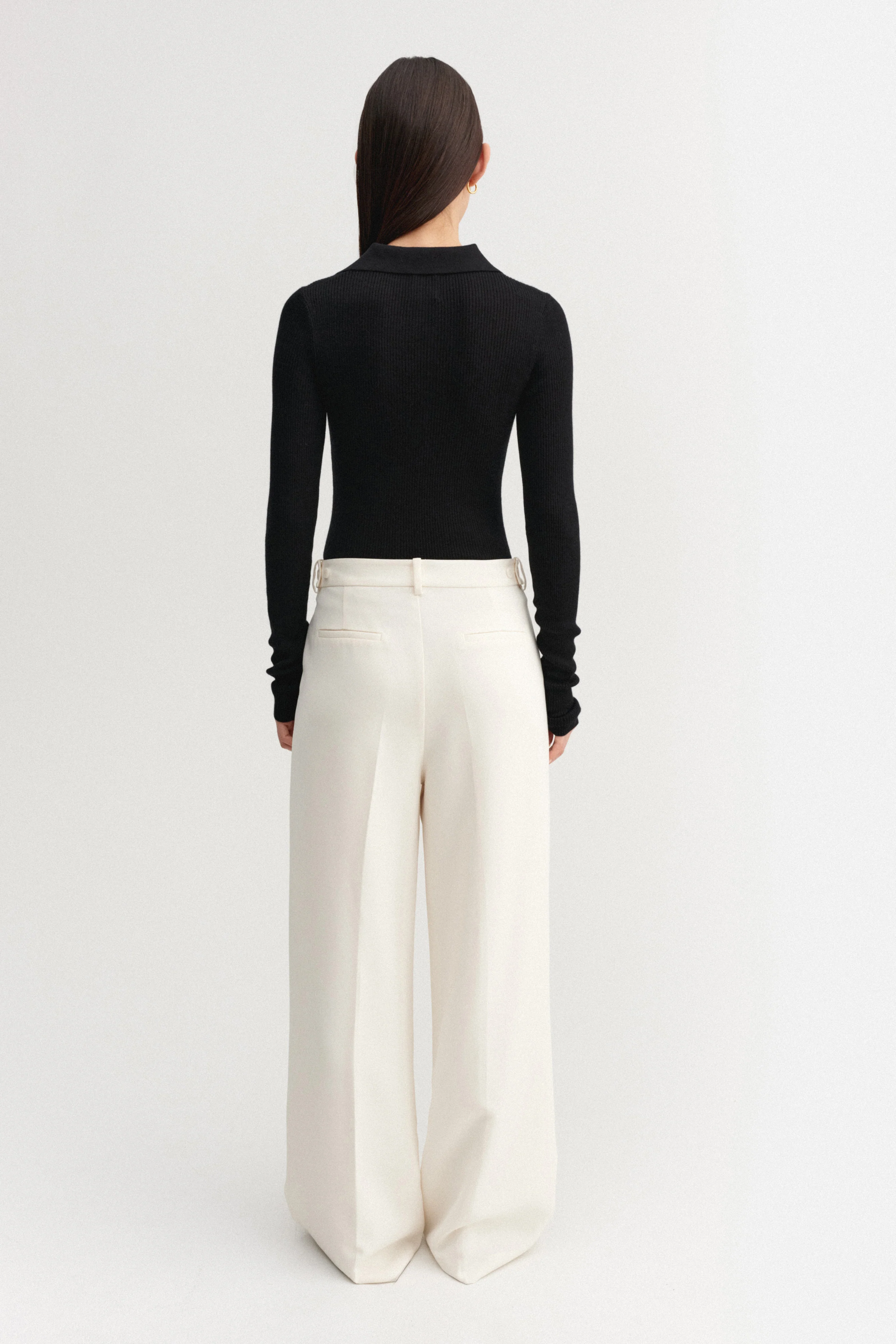 Jules Rib Top is crafted from a lightweight rib-knitted silk, wool, and cashmere blend. Cut to a slim silhouette with a neat collar. Finished with tonal pearl buttons along the front.