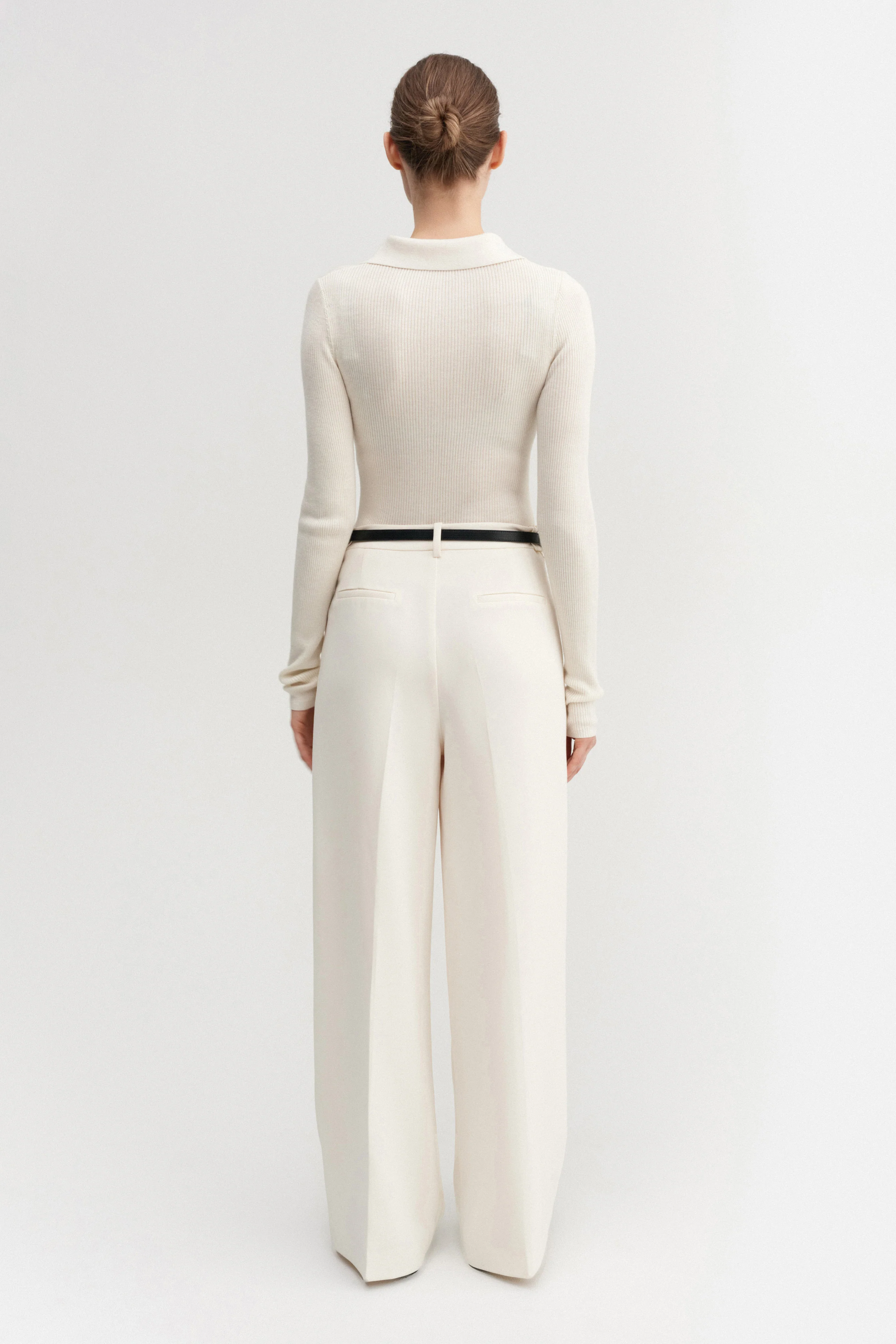 Jules Rib Top is crafted from a lightweight rib-knitted silk, wool, and cashmere blend. Cut to a slim silhouette with a neat collar. Finished with tonal pearl buttons along the front.