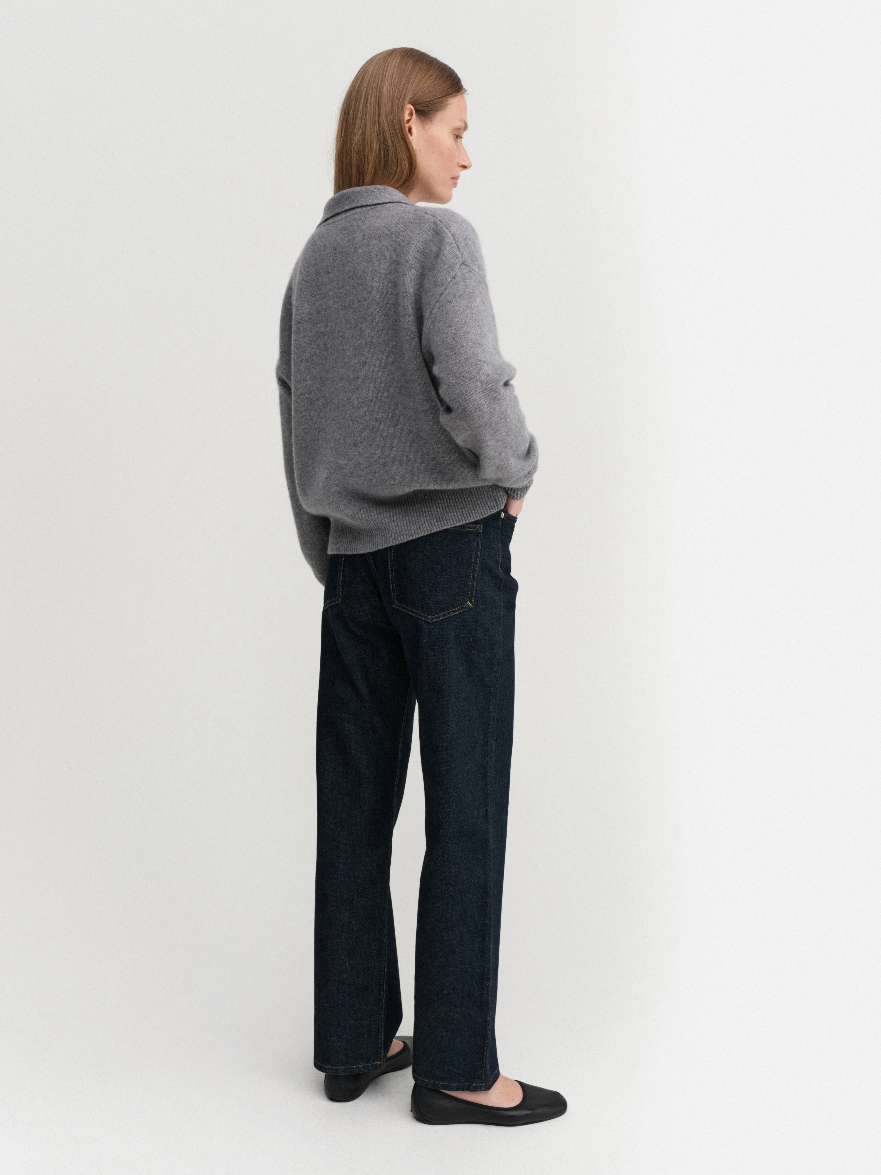 Kaia Collar Sweater is knitted from super soft cashmere, providing a smooth and itch-free feel against the skin. The sweater is designed for a timeless, laid-back appeal with a slightly cropped hem. It is featured with a classic V-neckline that is framed by a plain polo collar. Completed with ribbed cuffs and hem.